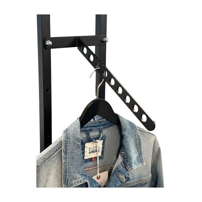 Skrå fronthæng til L-gadestativer – med 9 huller til ophængning Robust skrå fronthæng, der passer til alle typer L-gadestativer. Leveres inkl. bolte til nem montering. Fronthænget har 9 huller, så du let kan præsentere hængende tøj i et pænt og overskueligt display. Den skrå vinkel gør det muligt at hænge længere varer bagerst – uden at de skjuler det øvrige tøj. Mål: L 33 cm. Sort