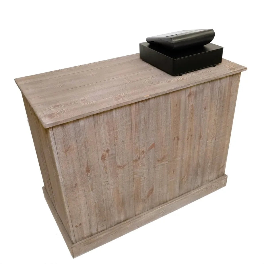 Robust Heritage butiksdisk komplet med aflåselig skuffe og 3 hylder til opbevaring af f.eks. silkepapir, bæreposer og andre varer. Denne disk har en dybde på 59 cm. Den naturlige variation i fyrtræet sikrer, at hver enkelt butiksdisk er unik og tilføjer et autentisk præg til din butiksindretning. Heritage butiksdisken leveres samlet til øjeblikkelig brug. Mål: B 119 x D 59 x H 90 cm.1 skuffe m/ lås og 3 hylder som vist.