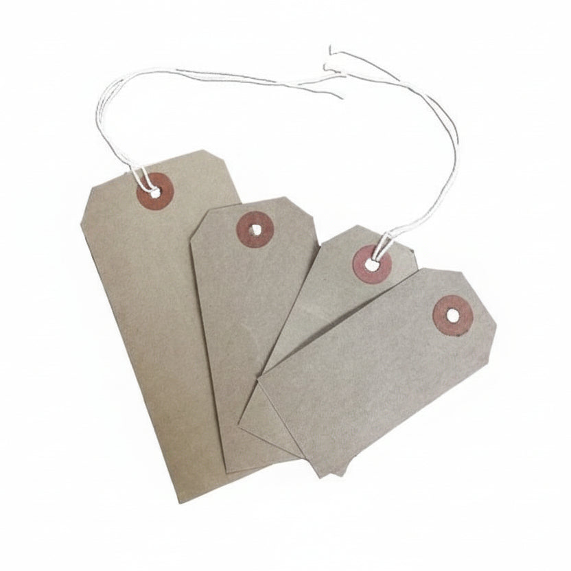 Manilla mærker, med snor, 1000 stk., 67 x 134 mm. Vælg hvid eller natur