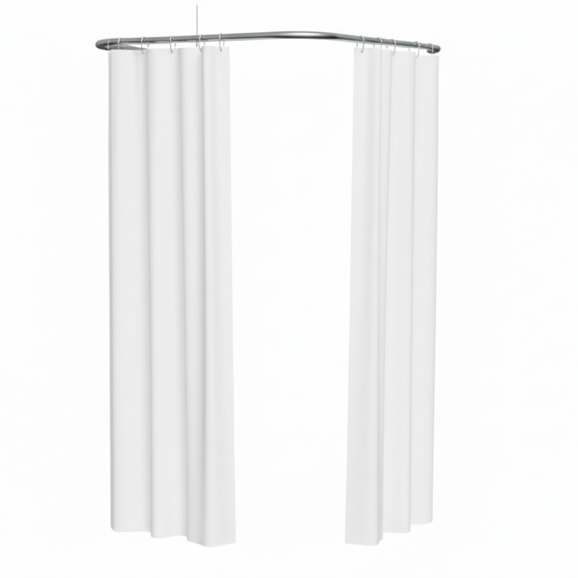 Prøverum, U-løsning (frit), inkl. hvidt forhæng, alu-farvet gardinstang. 100 x 100 x 100 cm, frithængende