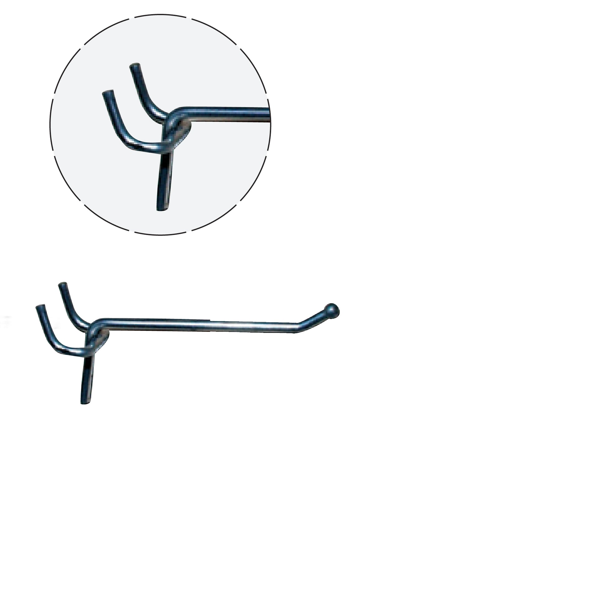 Alennuskoukku, T-/ura-paneeli ja reiällinen levy, galvanoitu, 5 cm, Ø 4 mm