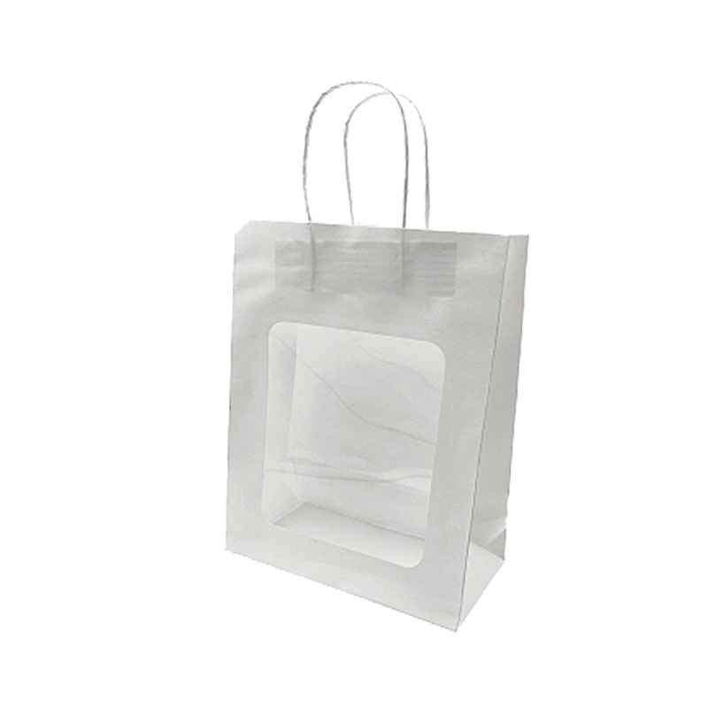 Suuri paperipussi kierretyllä kahvalla. Ikkuna pyöristetyillä kulmilla. Täydellinen ylelliseen lahjapakkaukseen. Paperipussi toimitetaan pakattuna 20 kpl:n erissä. Mitat: L 21,5 x S 10,5 x K 27,5 cm. Valkoinen. Saatavana myös pienempänä versiona.