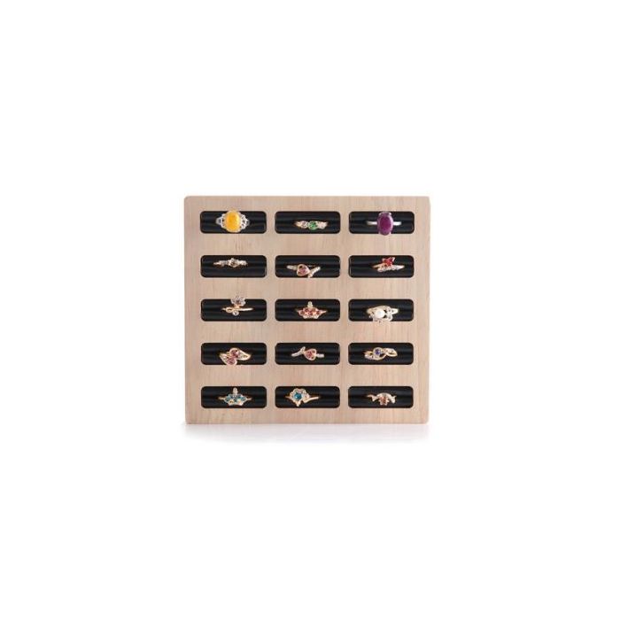 Koristerasia sormuille. Bambu puu. Nelikulmainen musta sisäosalla 15 lokeroa