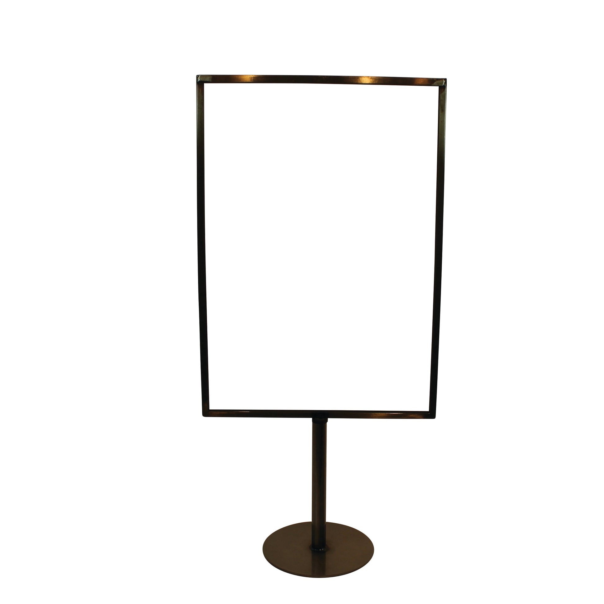 Perinteinen metallinen menukorttitelineemme tukevalla pyöreällä metallijalustalla. Menu- tai kyltintelineemme sopii kaikenlaiseen opastukseen: laminoidulle kyltille, muovitaskuilla varustetulle kyltille, paperille tai pahville — kaikki voidaan asettaa telineeseemme. Jalustan kiinteä korkeus on 19 cm, ja sitä voi korottaa jopa 15 cm erikseen ostettavalla jatkepalalla. Suosittelemme myös muovitaskujen hankintaa paperikyltin suojaamiseksi kulumiselta ja likaisuudelta. Galvanoitu malli sopii erityisesti ulkomyyntipöytiin, sillä se kestää vaihtelevia sääolosuhteita.
